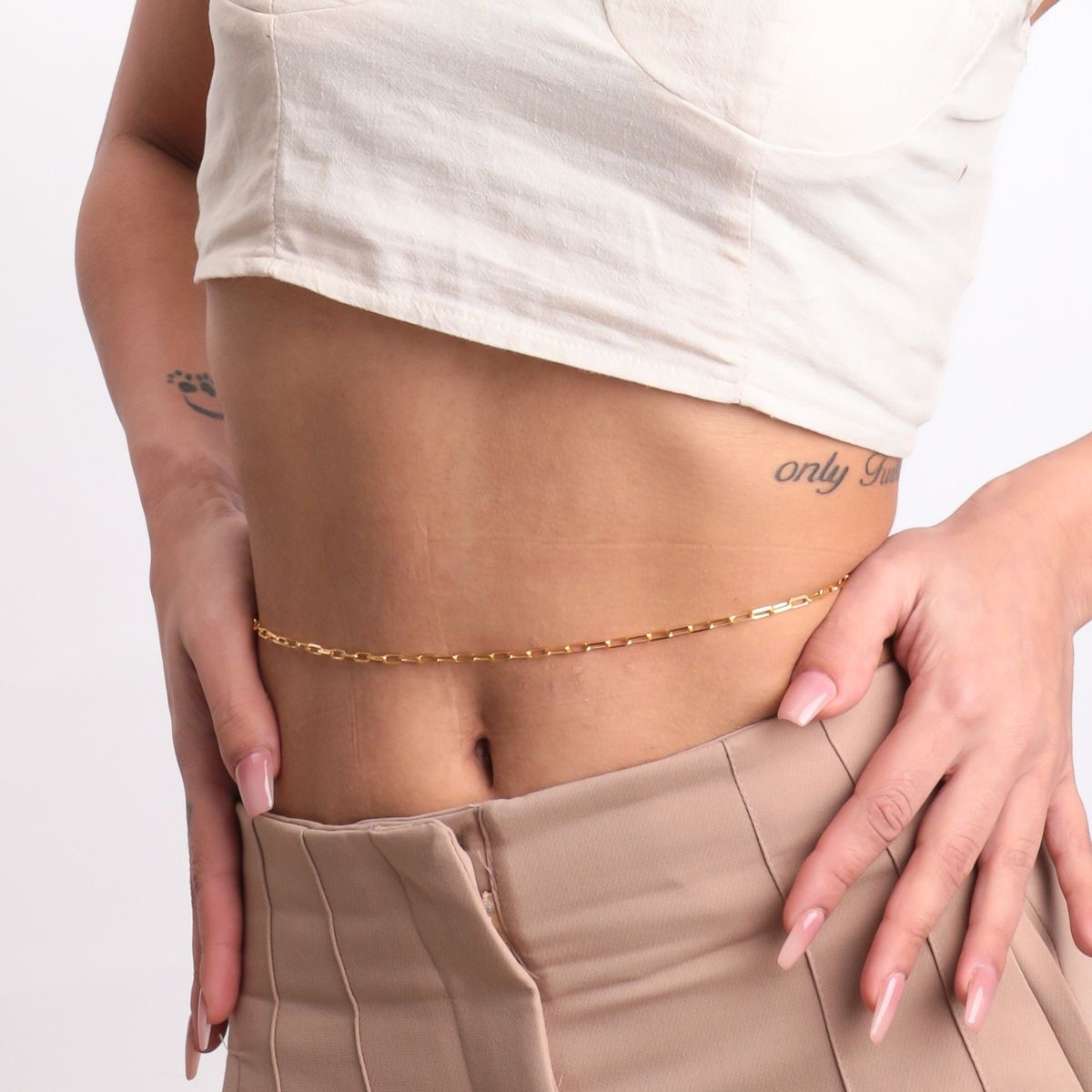 A delicate 2.5mm Paperclip waist chain that adds a subtle, elegant touch to any outfit. Perfect for layering or wearing solo.